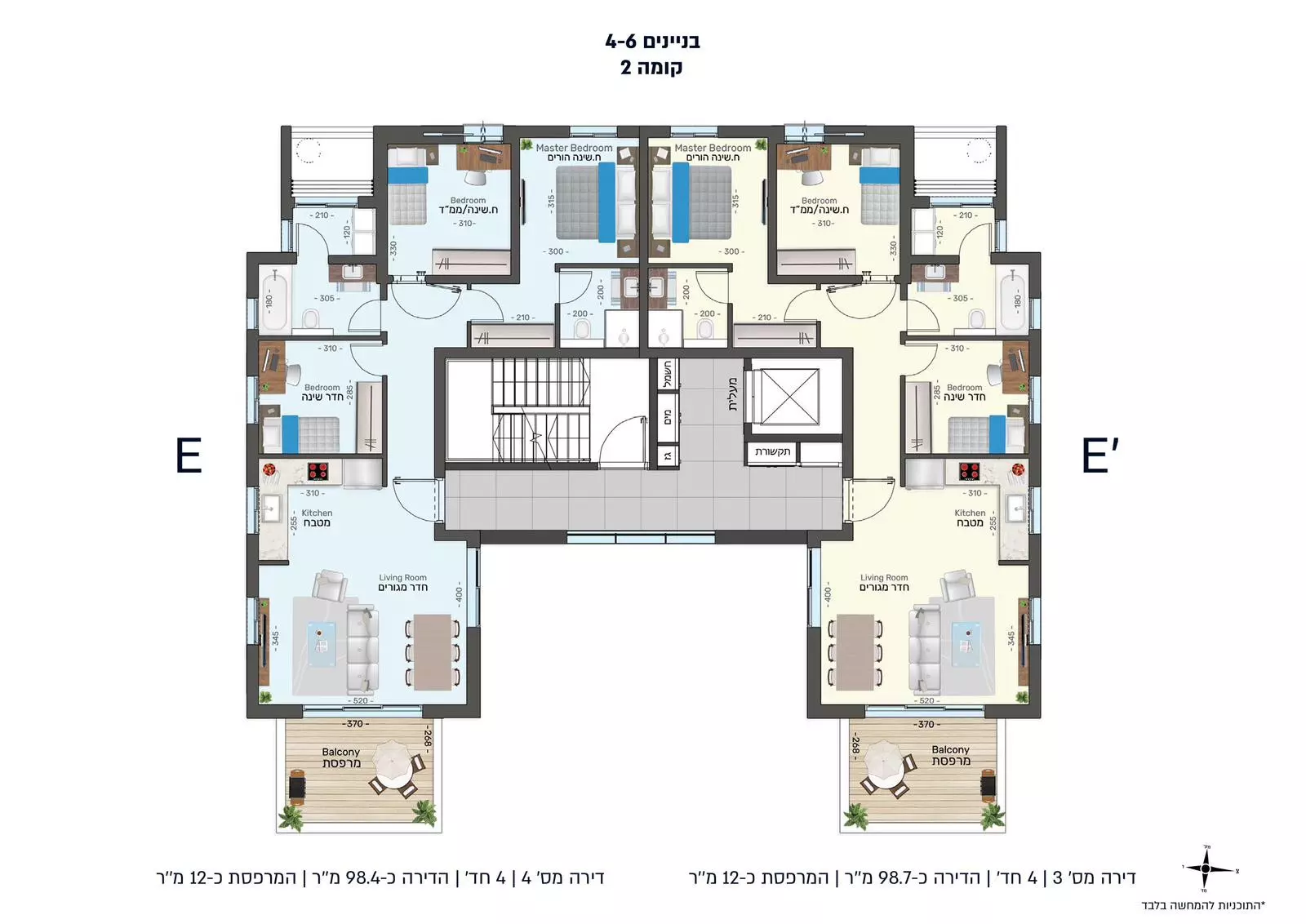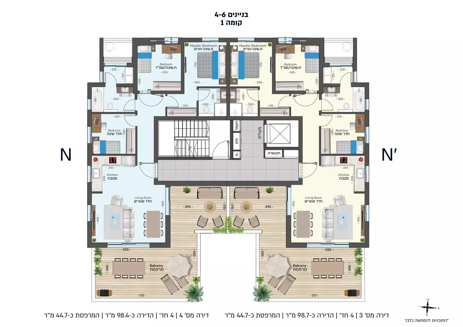 דירות 3, 4 ו-5 חדרים, דירות בגובה גן, וכן פנטהאוזים מפוארים, חלקם עם בריכות פרטיות.